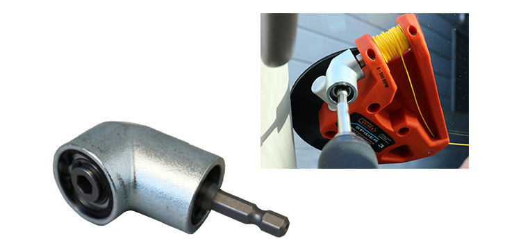 また、スパイダーシリーズの特長としては、作業前に内張を外す必要がないのが大きなポイント。しなやかなファイバーラインを電動ドリルドライバーで巻き上げながらカットするため、内張や塗膜にキズが付きにくく、従来のL刃やピアノ線等の手作業に比 べてより安全です。ファイバーラインは約 3~4 回再利用ができるのでとても経済的。コンパクトな本体は使い勝手も良好で、多くのプロの皆様にご愛用頂いています。